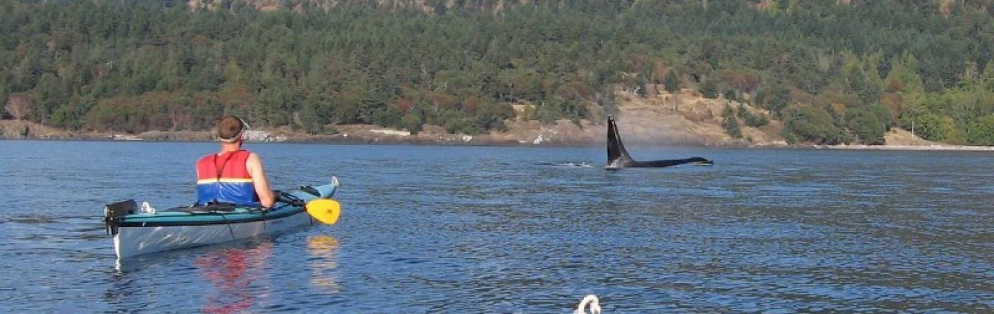 Orcas are the ocean's top predators and travel over 100 miles in a 24 hour period. They are foraging, resting, traveling, and socializing in their own environment, and it's difficult to predict their exact location day-to-day, or evening hourly! Guests who are really hoping to encounter killer whales by kayak should book multiple full-day kayak tours, such as our beginner to intermediate 5-Hour Orca & Wildlife Search by sea kayak tour or our intermediate to advanced 5+ Hour West Side Whale Sanctuary sea kayak tour. These tours are designed to maximize wildlife sightings, including the Resident Killer Whales that frequent these waters in the summer months. If you are feeling very adventurous, join us on a 2- or 3- Day Multi-Day sea kayak tour and get more on-the-water time! More time on the water means a greater likely hood to encounter Orcas! Very lastly, if you only have a short amount of time to spend on San Juan Island and are not able to join us on multiple full-day sea kayak tours, we strongly encounter our guests to join us for a guided sea kayak tour and a Whale Watch Tour by motorized vessel, which boasts a 9/10 tours successful whale (such as killer whale, humpback, and/or minke whale) sightings during peak season (June through mid-Sept).