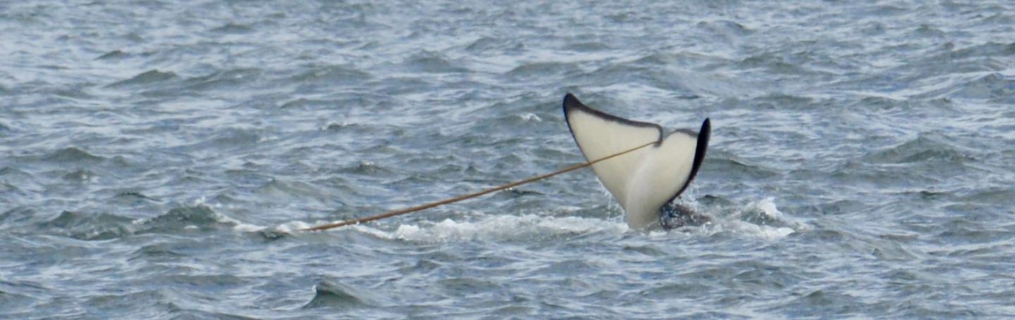 Soon, we headed just a bit more offshore to another animal. It was J26 Mike, Slicks only son. Guests were impressed by his size, with male dorsal fins getting 3-4 feet taller than those of the females, which we had been watching. He also was being his goofy self, swimming very slowly without completely going back under the surface, circling and twisting to one side, as well as quite a few lazy spyhops. I joked that he (my favorite whale) was checking to see if I was out today.