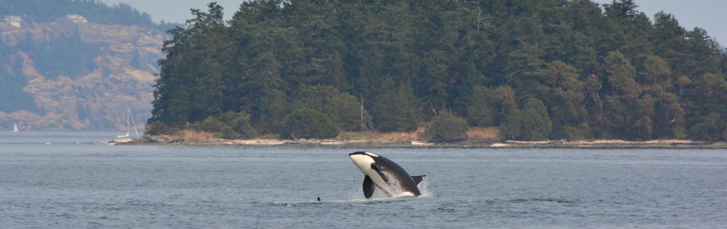 However, fate had different plans. Once we rounded Pearl Island, reports came in of Transients outside of Fulford Harbor on Saltspring. We consulted our charts, checked our GPS and decided - yes! - the whales were in our range! We throttled forward on a beautiful journey past Turn Point, Morseby Island, and Portland Island. After just an hour, we were greeted with our favorite site - Transients breaching and splashing in the middle of the channel!