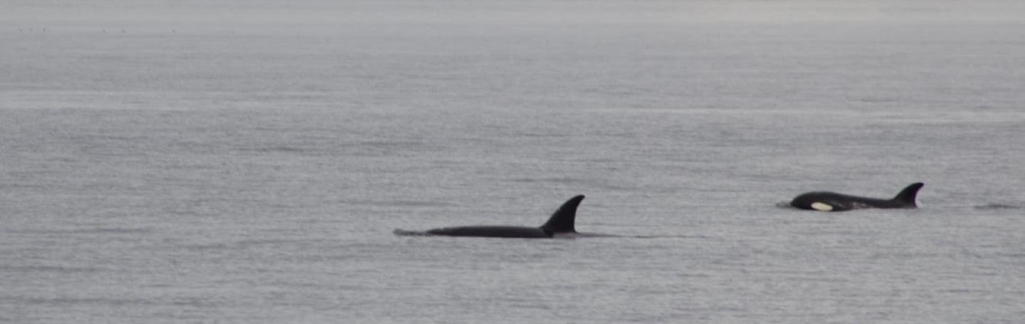 We then continued travelling toward Lummi Island. The weather out on the water was just stunning, and it was a lovely boat ride. When we arrived to the area that the orcas were in, we caught sight of a large group at the surface. There were two family pods in the area. They were identified as the T99's and the T36A's. There were a couple of young juveniles in the group, and there was at least one obvious calf. We got to watch them for about 20 minutes, and as we started to leave to head back toward the harbor, the whales began porpoising away, travelling very quickly. One of the family pods took the lead, and the other one stayed behind for a few minutes. We went over to where the lead group was, and they began tailslapping and breaching! It was incredible. The other family pod soon joined, and they were also joined by a bunch of gulls. We didn't see any evidence of prey, but their behavior suggested that they possibly captured something. We headed back toward the harbor with yet another beautiful boat ride. What a fun-filled day aboard the M/V Sea Hawk!